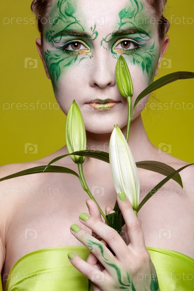 Портрет красивой девушки, демонстрирующей эльфийский боди-арт