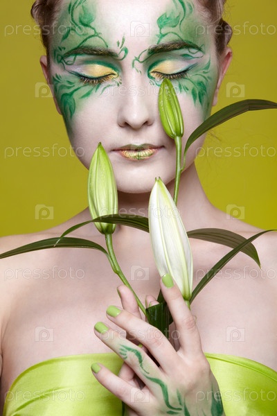 Портрет красивой девушки, демонстрирующей эльфийский боди-арт