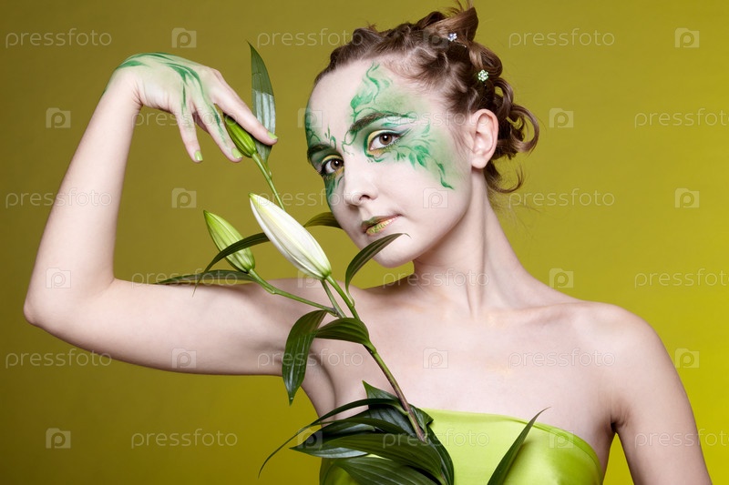 Портрет красивой девушки, демонстрирующей эльфийский боди-арт