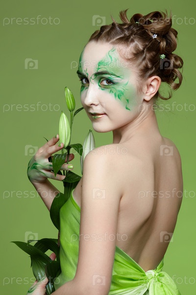 Портрет красивой девушки, демонстрирующей эльфийский боди-арт