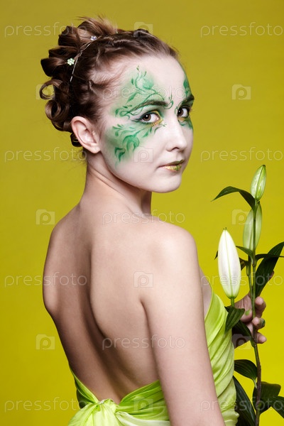 Портрет красивой девушки, демонстрирующей эльфийский боди-арт