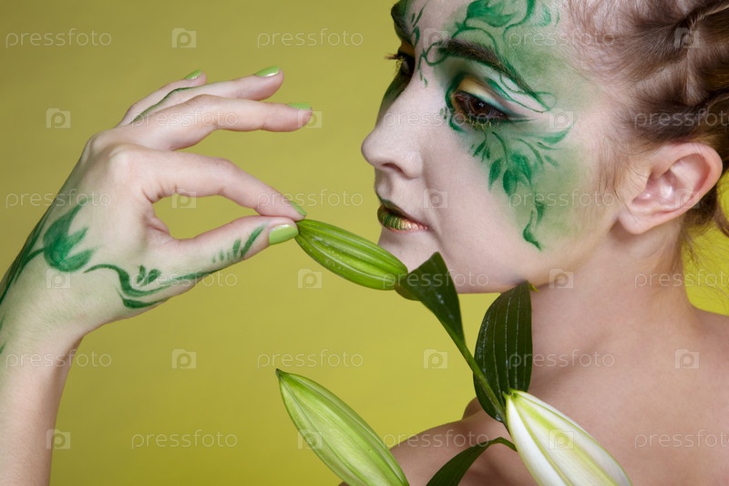 Портрет красивой девушки, демонстрирующей эльфийский боди-арт