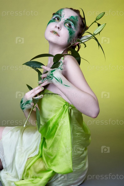 Портрет красивой девушки, демонстрирующей эльфийский боди-арт