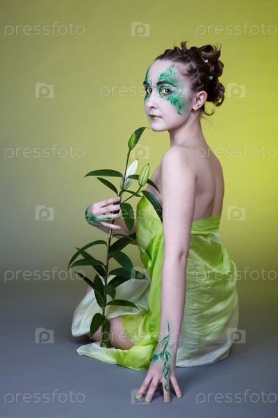 Портрет красивой девушки, демонстрирующей эльфийский боди-арт