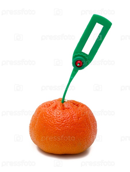 Мандарин с этикеткой на белом фоне