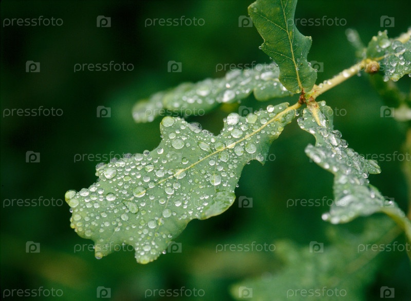 Роса на листе дуба