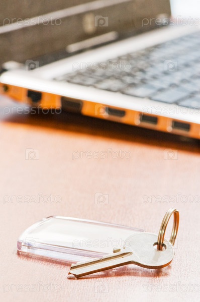 Ключ с брелоком на офисном столе