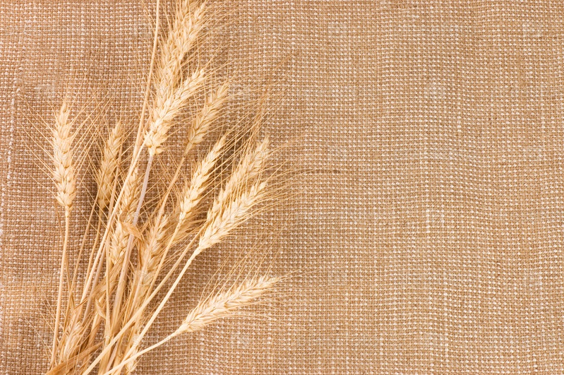 Колосья пшеницы на грубой ткани