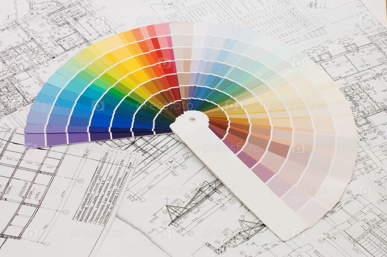Палитра цветов на фоне плана квартиры