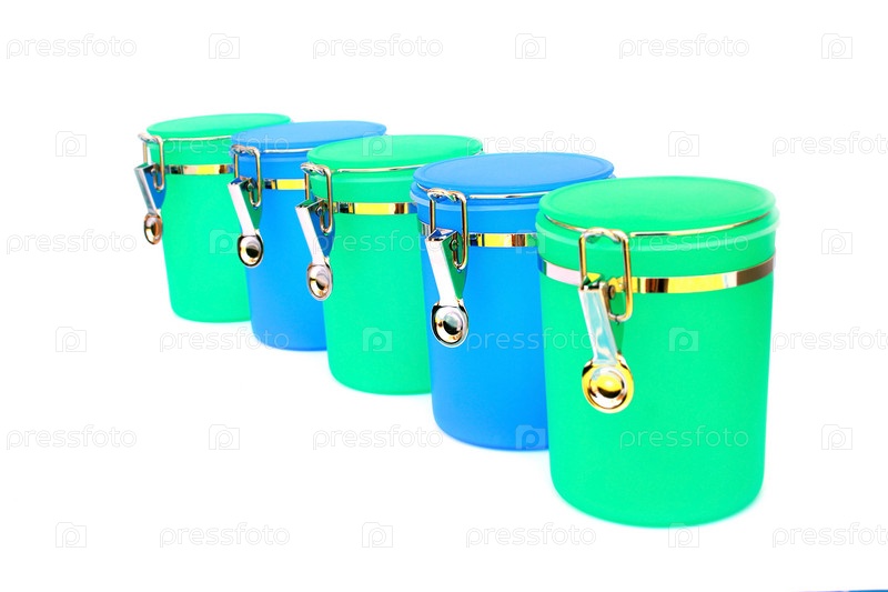 Пластиковые кухонные контейнеры на белом фоне