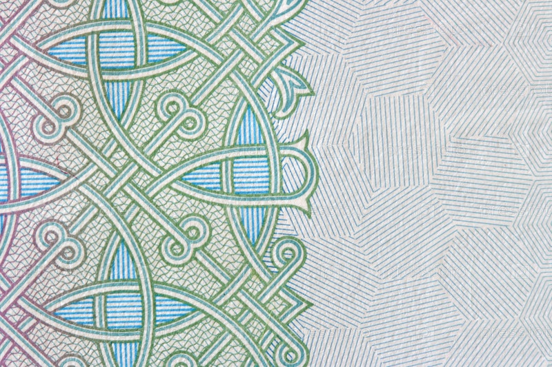 Защитный рисунок на тысячерублевой купюре, макросъемка