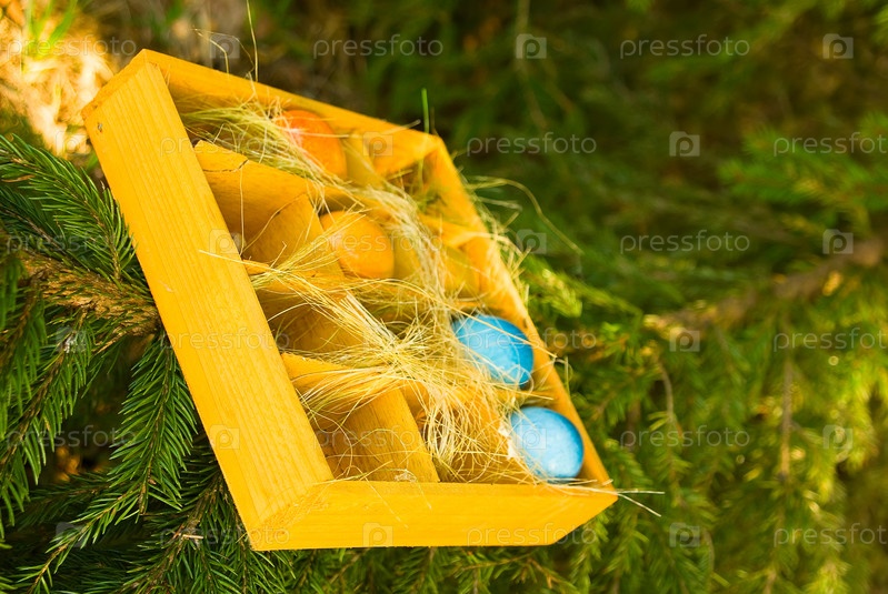 Пасхальные яйца в ящике