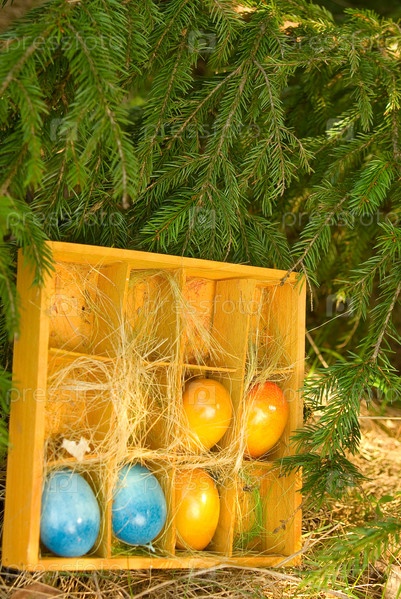 Пасхальные яйца в ящике