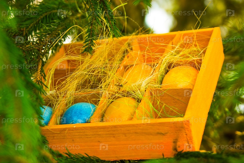 Пасхальные яйца в ящике