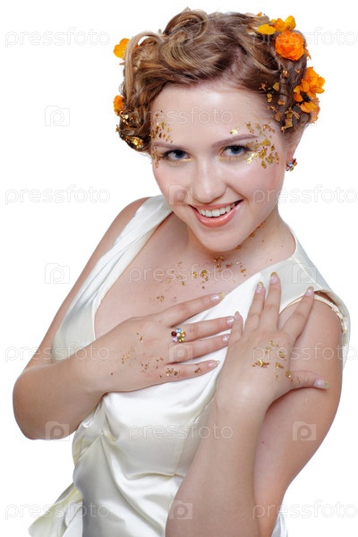 Портрет красивой девушки в белом платье