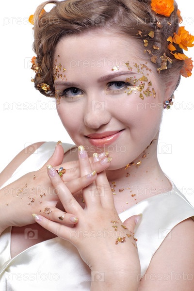 Портрет красивой девушки в белом платье