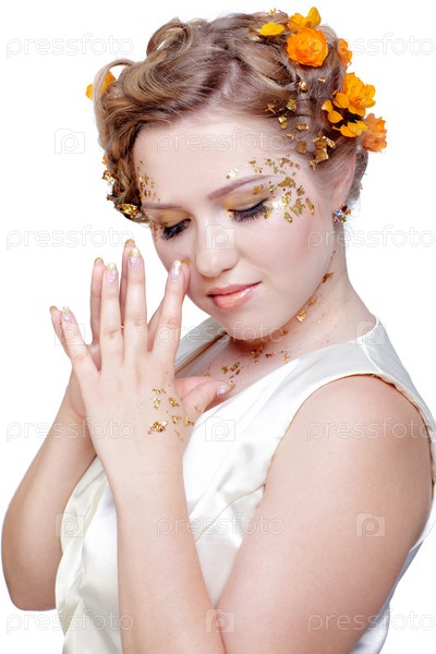 Портрет красивой девушки в белом платье