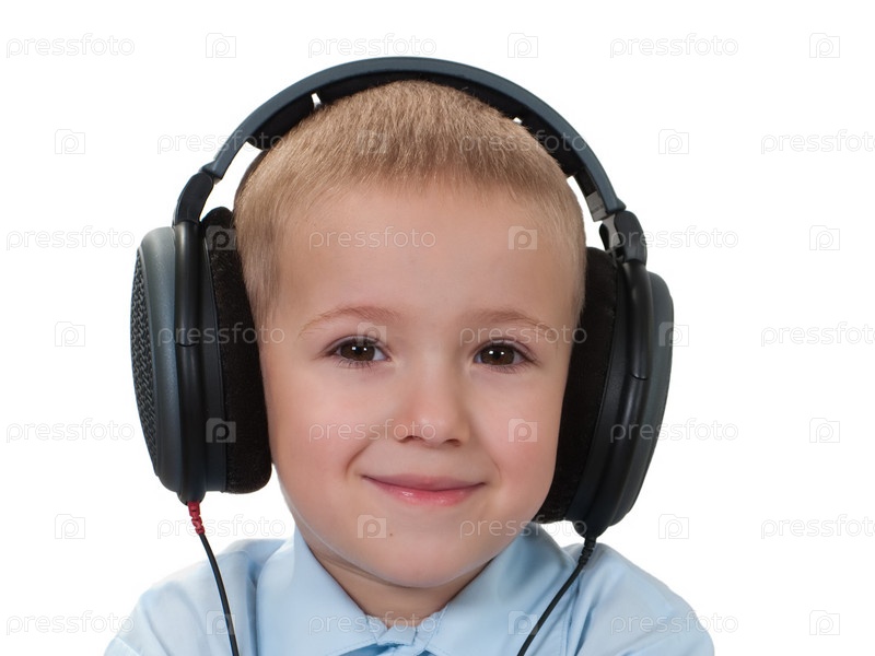 Ребенок в наушниках слушает музыку