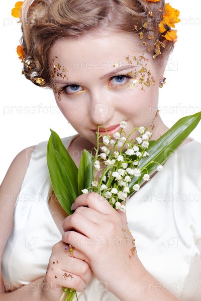 Девушка с букетом ландышей в руках