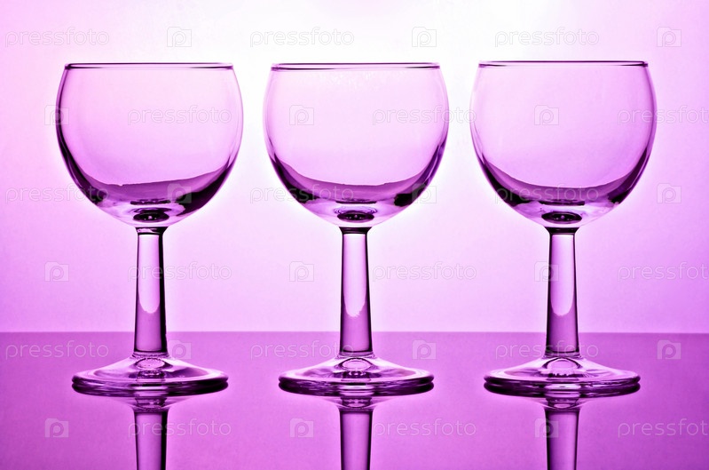 Три стеклянных бокала, стоящих в ряд