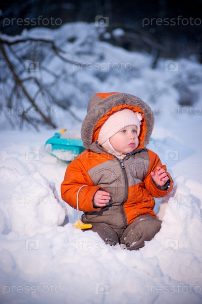 Ребенок сидит в снегу