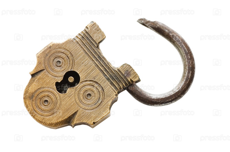 Старый навесной замок, изолированный на белом фоне