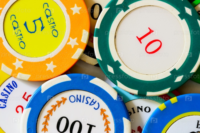 Разноцветные фишки из разных казино крупным планом