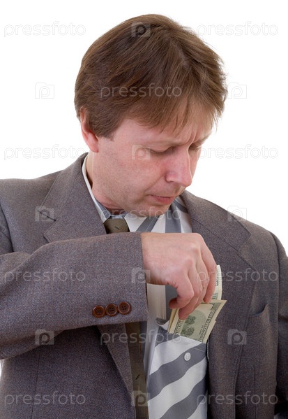 Бизнесмен, засовывающий деньги в карман