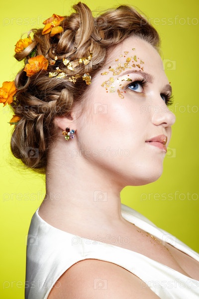 Портрет девушки в белом платье с цветами в волосах