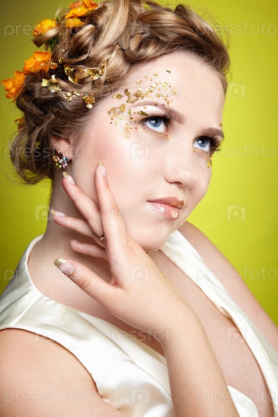 Портрет девушки в белом платье с цветами в волосах