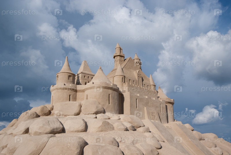 Замок из песка на фоне облачного неба