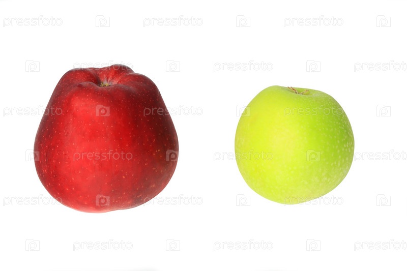 Красное и зеленое яблоко на белом фоне изолировано