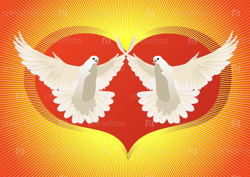 Два голубя на фоне сердца