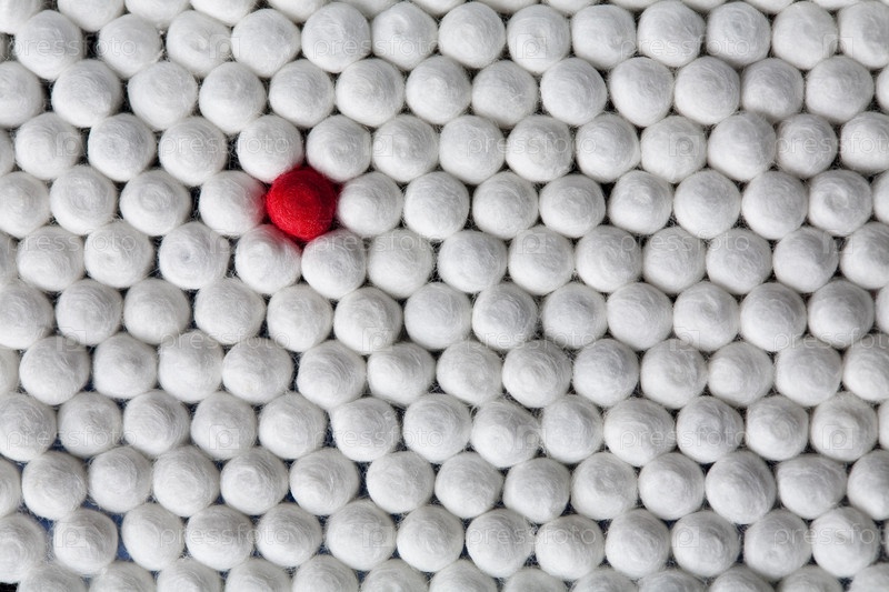 Красная ватная палочка среди белых