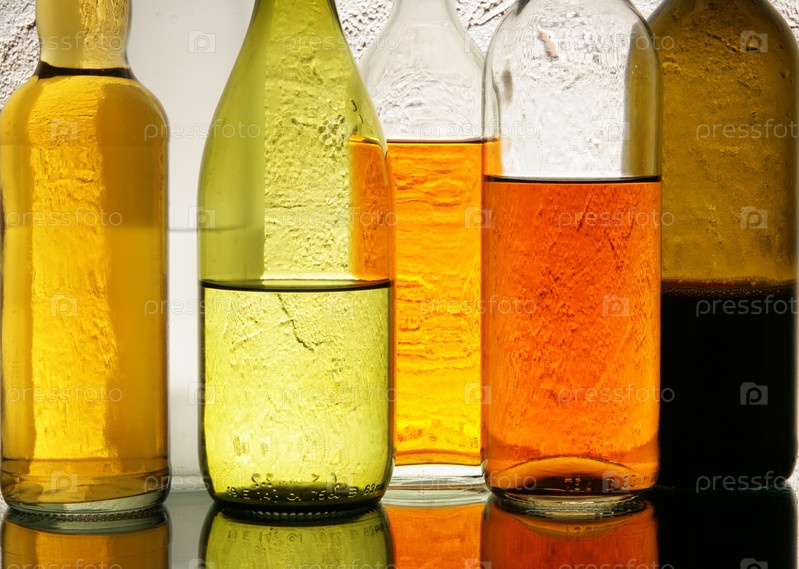 Бутылки с алкогольными напитками на текстурированном фоне