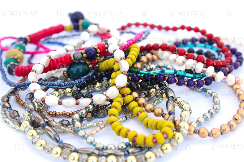 Разноцветные браслеты на белом фоне