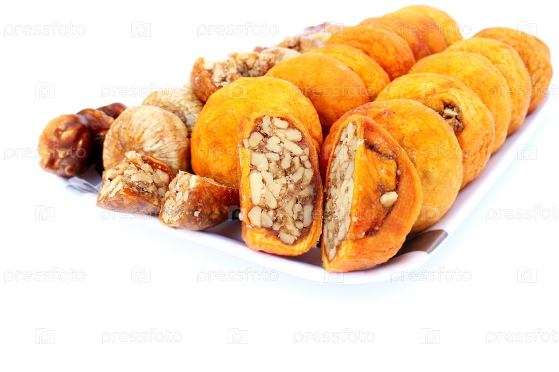 Сухофрукты в лотке на белом фоне