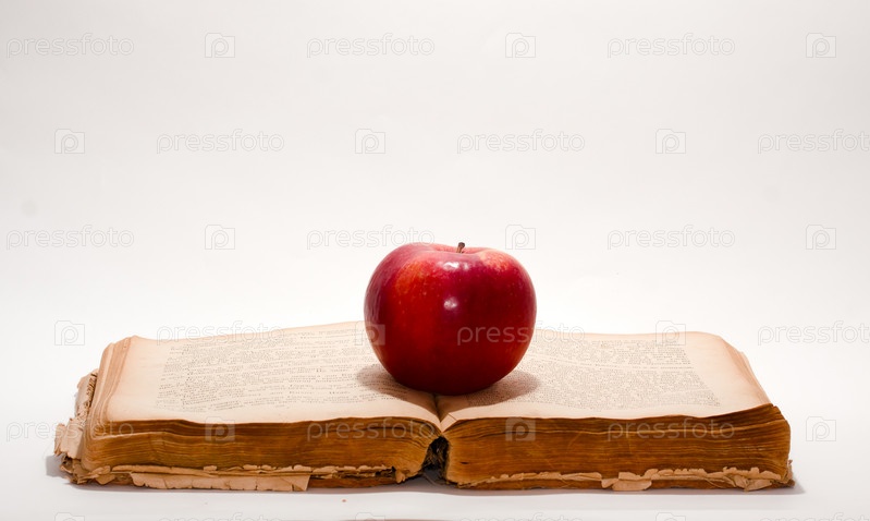 Красное яблоко на открытой книге