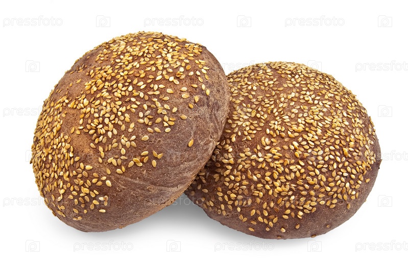 Ржаные булочки с кунжутом на белом фоне