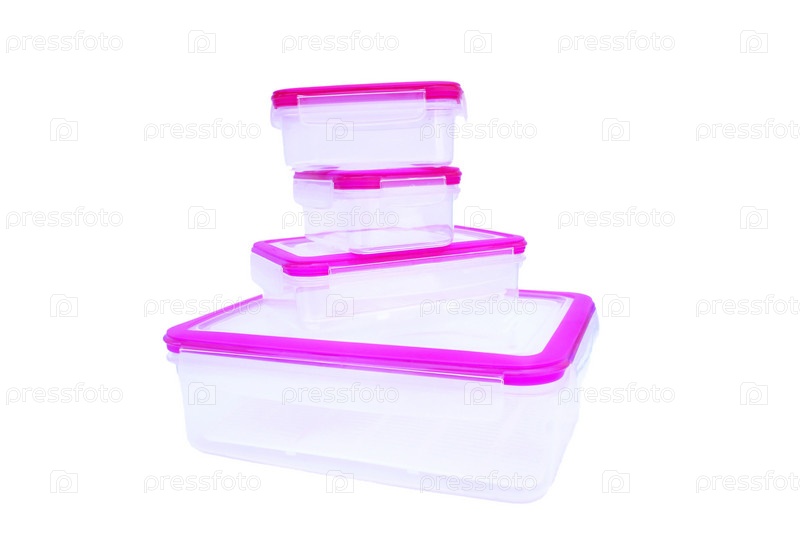 Пластиковые контейнеры для хранения пищевых продуктов на белом фоне