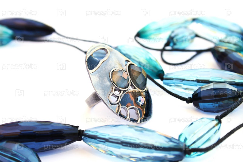 Ожерелье с кольцом на белом фоне