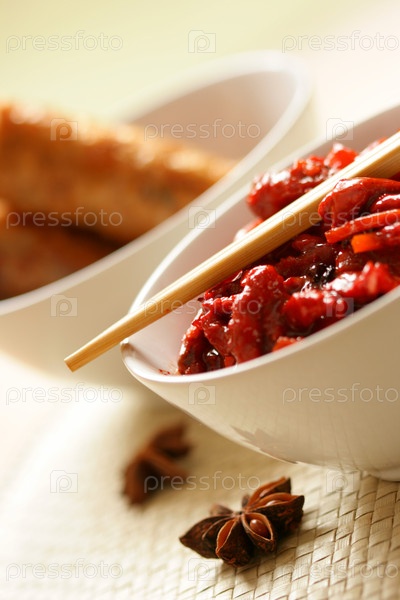Китайское блюдо - свинина с овощами в соусе