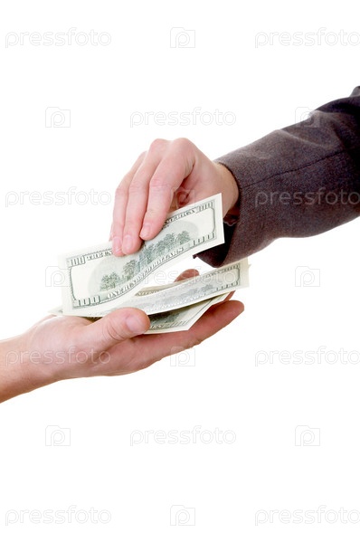 Мужчина передает доллары другому человеку