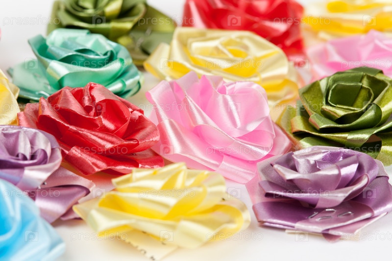Разноцветные подарочные ленты в виде цветов. Фон