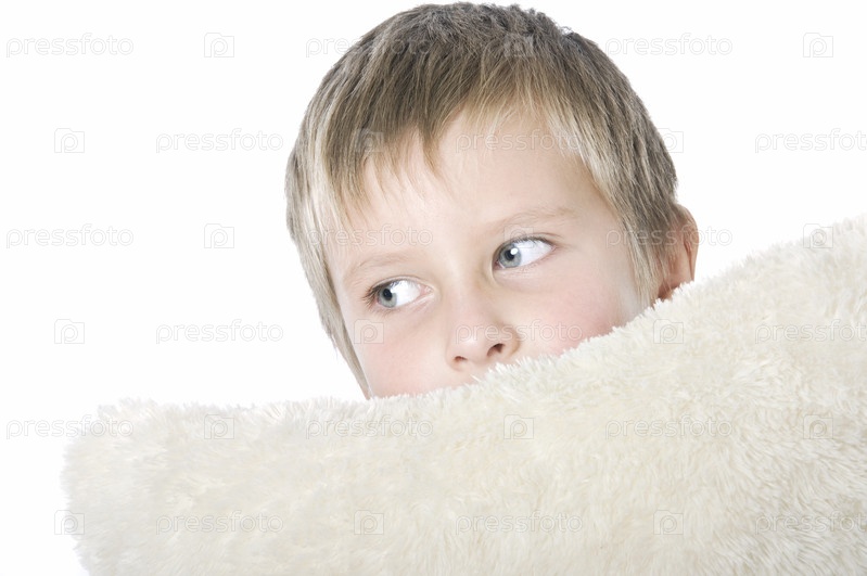 Портрет мальчика с белой мягкой подушкой
