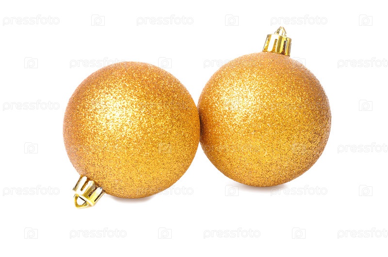 Два золотисто-желтых рождественских шара изолированы на белом