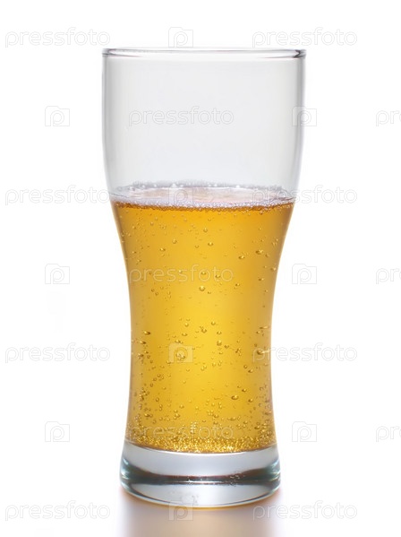 Стакан светлого пива на белом фоне