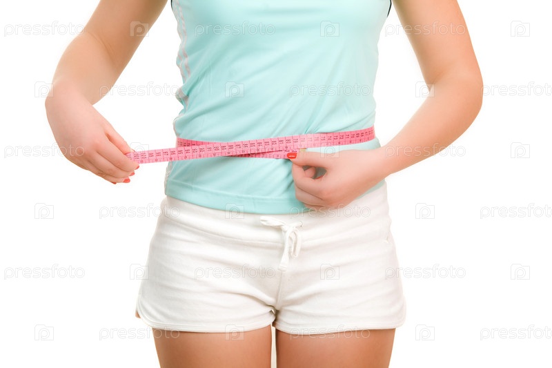 Женщина измеряет обхват талии