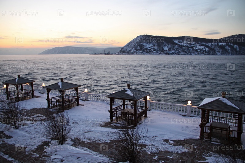 Летние беседки со столиками в зимнее время