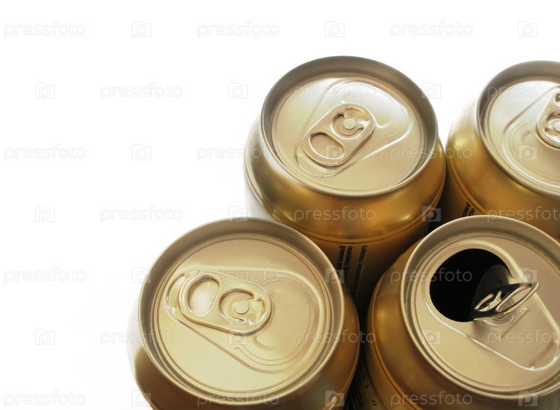 Золотистые пивные банки изолированы на белом